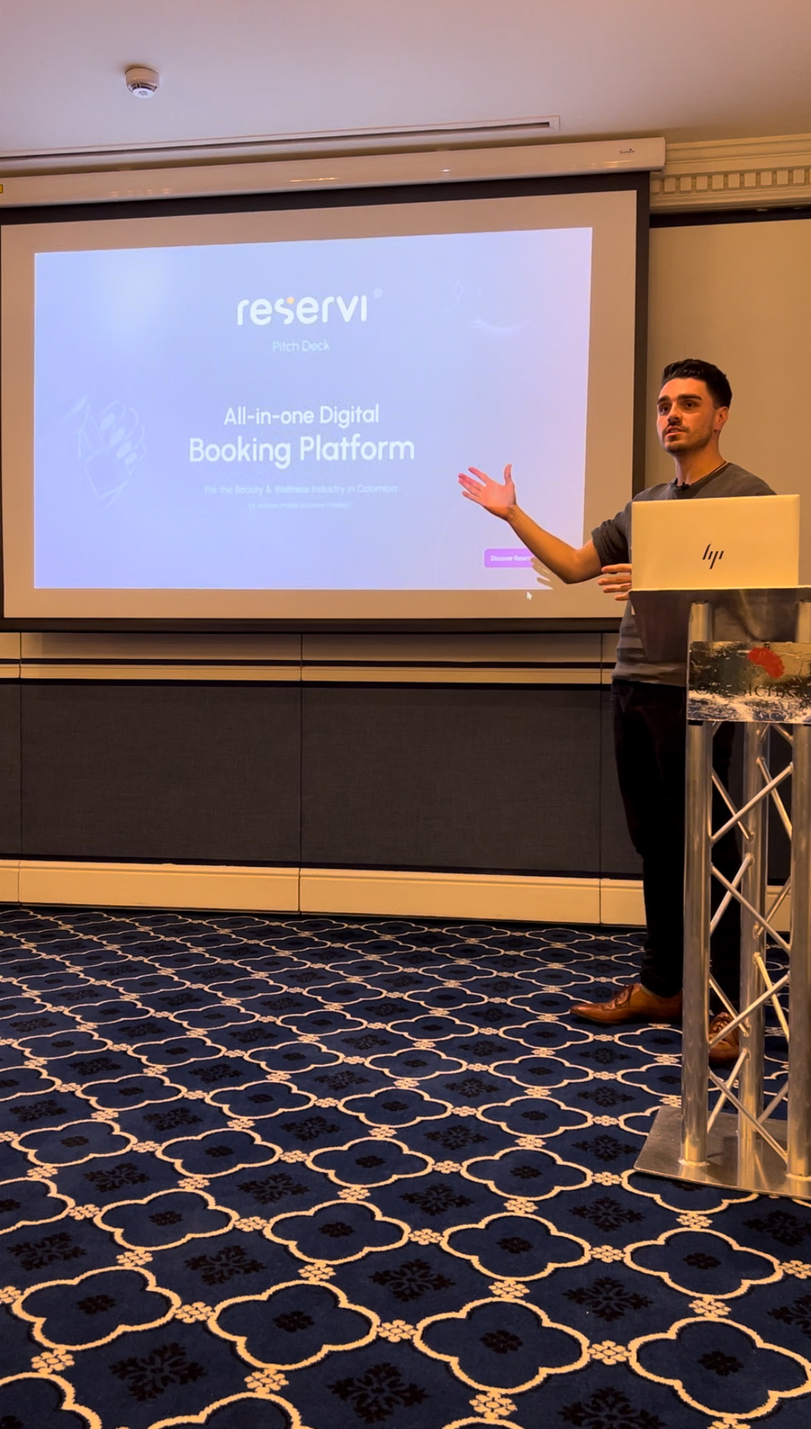 Jonathan (CEO) presentando Reservi en una conferencia de startups