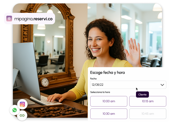 Comparte tu link Reservi y olvídate del interminable “¿a qué hora puedes?” Se agendan por su cuenta en tus espacios libres.